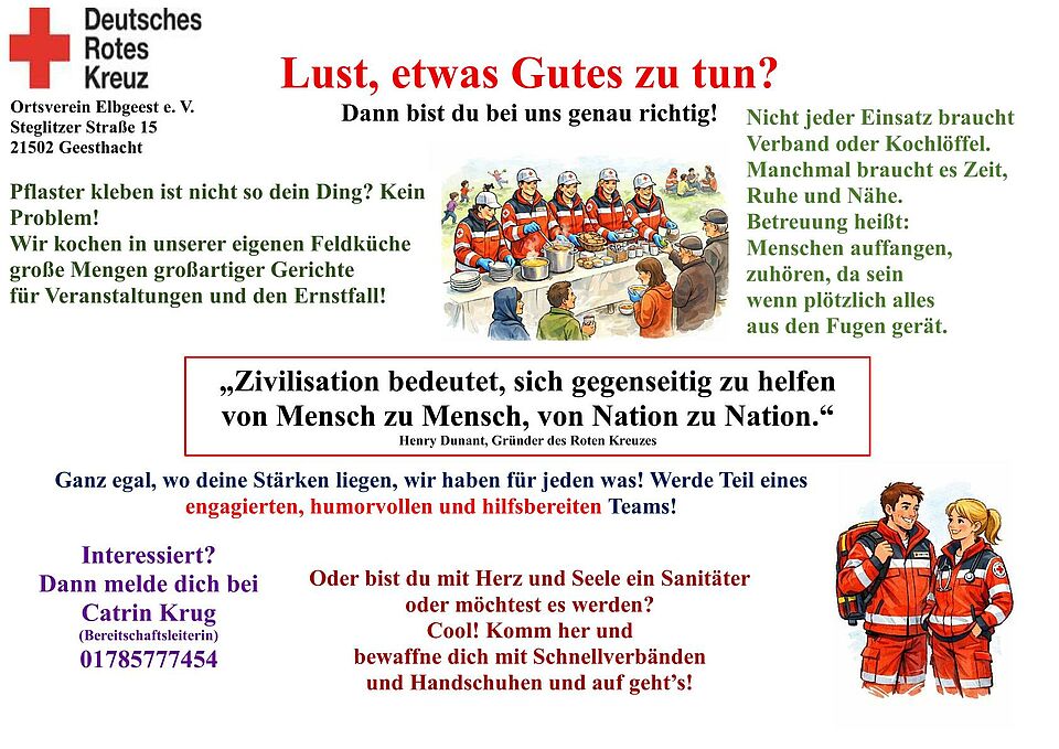 Am 10. Oktober 2025 trafen sich die Mitglieder des DRK Ortsverein Elbgeest e.V. in Geesthacht zur diesjährigen Jahreshauptversammlung. Neben den Berichten aus dem vergangenen Jahr standen diesmal auch Neuwahlen und einige besondere Ehrungen auf dem Programm.