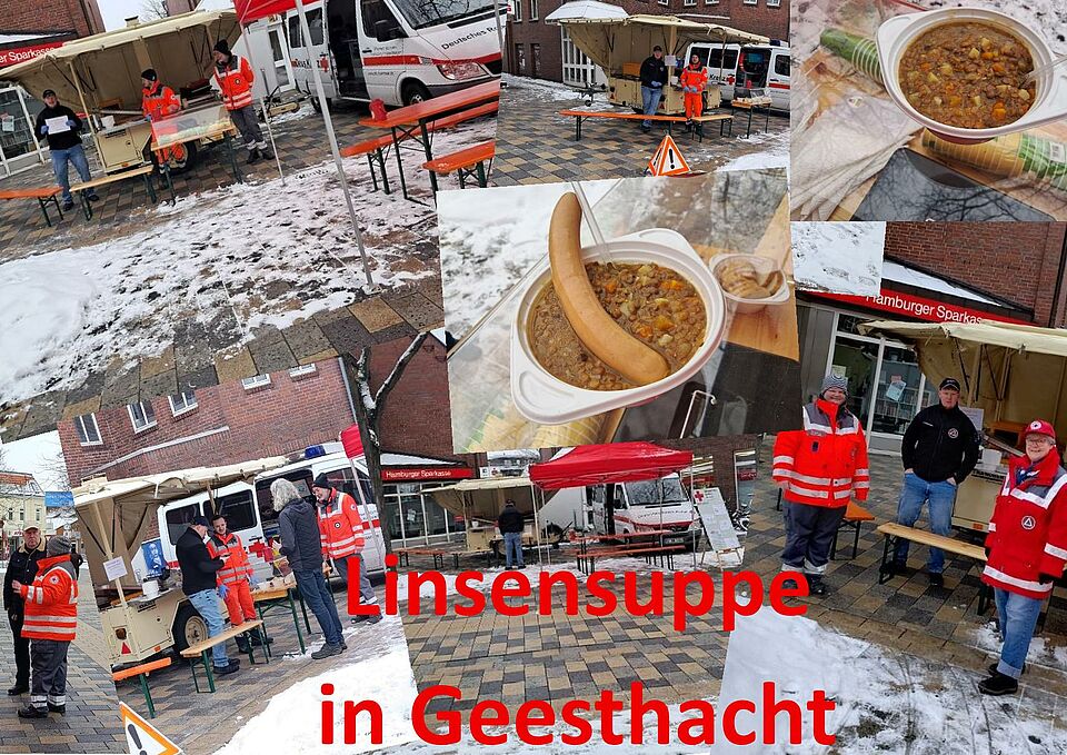 Am Samstag, dem 14.02.2026, wurde die Geesthachter Fußgängerzone kurzerhand zur duftenden Suppenstraße. Zwischen der Hamburger Sparkasse und dem Euroshop servierten wir von 10:30 Uhr bis 12:30 Uhr aus unserer Feldküche heraus dampfende Linsensuppe – mit viel Freude, Teamgeist und der festen Überzeugung, dass gute Suppe mehr kann als nur satt machen.
